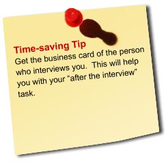 - Prepare for follow-up – Before you leave, ask the interviewer for his or her business card. This will help you with your “after the interview” task.